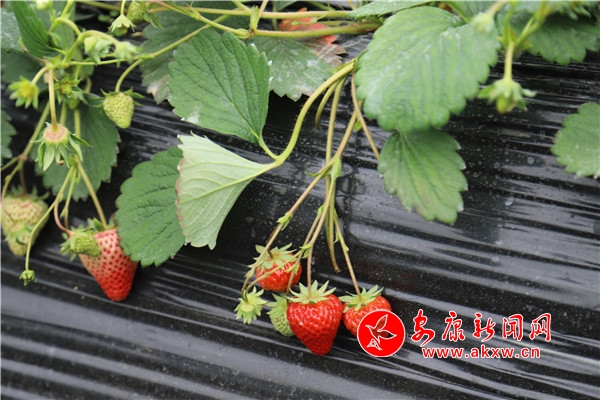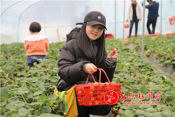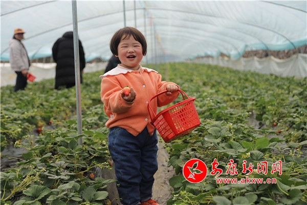 “媽媽,這里的草莓真得好甜。”一個(gè)剛進(jìn)大棚里采摘的小朋友欣喜地喊著。
