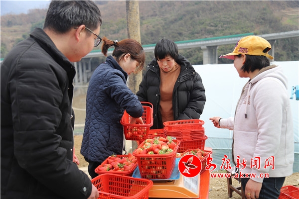 前來(lái)采摘草莓的人絡(luò)繹不絕。在采摘園區(qū),筆者看到不少游客興高采烈地提著剛采摘的草莓,排隊(duì)稱重。4位客人在棚里吃了草莓,覺(jué)著口感不錯(cuò),就一次買(mǎi)了1000多塊錢(qián)的草莓滿載而歸。