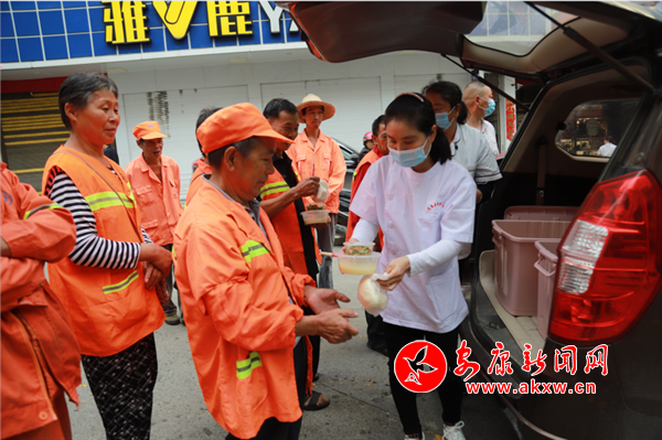 一份家常菜 ,情暖環(huán)衛(wèi)工人心。連日來,縣城的環(huán)衛(wèi)工每天清晨8時就會聚集在郵電小區(qū)門口,小河口、肖家壩三個點(diǎn)每天向城內(nèi)環(huán)衛(wèi)工人免費(fèi)定時定點(diǎn)提供52份早餐。筆者看到,一群身穿著環(huán)衛(wèi)服的環(huán)衛(wèi)工人正在品嘗美食,他們臉上洋溢著喜悅的神情,伴著早餐那騰騰的熱氣,已成為嵐皋這座小城中一道靚麗的風(fēng)景。