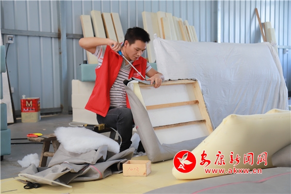 本網(wǎng)訊(通訊員 廖霖)伴著清晨的秋涼,嵐皋縣民主鎮(zhèn)銀盤(pán)村迎來(lái)新的一天。筆者走進(jìn)嵐皋縣家旺銘品家具有限公司加工廠,映入眼簾的是縫紉機(jī)前工人忙碌的身影,工人們正專注、熟練地縫制著沙發(fā)皮套,縫紉機(jī)“噠噠”響不停,她們有的在飛快地踩著縫紉機(jī),有的在整理已經(jīng)加工好的沙發(fā),有的在切割木料,十幾名工人正在各自操作臺(tái)上有序忙碌。