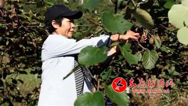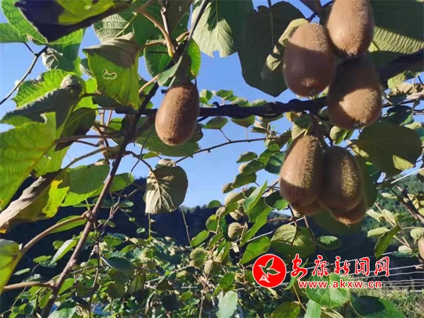 收成的喜風(fēng)吹過的不止是蠟燭村東桃林一個地方,在蠟燭山北邊的佐龍村晏家堡獼猴桃園區(qū)里,一個個毛絨絨的獼猴桃正擠在綠葉間散發(fā)著誘人清香。