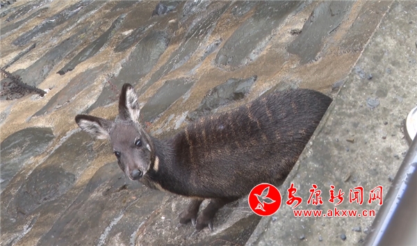 嵐皋林業(yè)局野生動(dòng)物保護(hù)站、新華森林派出所迅速派人趕赴現(xiàn)場(chǎng)。根據(jù)地形,采用抄網(wǎng)捕獲方式進(jìn)行營(yíng)救,經(jīng)工作人員鑒定,確認(rèn)該野生動(dòng)物為國(guó)家一級(jí)保護(hù)動(dòng)物林麝,體重約9千克,體長(zhǎng)600毫米,肩高500毫米,尾巴短、四肢細(xì)長(zhǎng)、蹄子狹而尖、耳朵長(zhǎng)而直立。經(jīng)過相關(guān)人員檢查,發(fā)現(xiàn)這只林麝無明顯外傷且健康,符合放生條件,隨即驅(qū)車將其帶至密林深處放歸大自然。