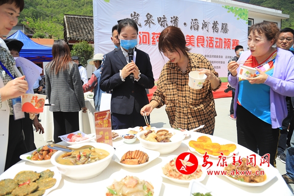 暢游清幽藥谷之鎮(zhèn),品嘗農(nóng)家藥膳美食;顒(dòng)現(xiàn)場(chǎng),人潮涌動(dòng),十分熱鬧。山藥燒排骨、槐花雞蛋、青蒿牛肉餅、香酥芍藥花、蠻子藥炒雞蛋……一道道現(xiàn)場(chǎng)烹飪制作的美食,極具本土特色,令人垂涎三尺……讓人“食”指大動(dòng),引得近千名村民和外地游客“味蕾大開”,爭(zhēng)相品嘗,舌尖上的鄉(xiāng)愁和美景第一次在這個(gè)四月深刻交融。