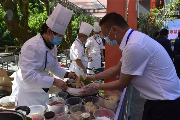 來自全國各地餐飲企業(yè)和美食行業(yè)的代表紛紛發(fā)來賀詞視頻,盛贊嵐皋美食,送上美好祝福。活動現(xiàn)場分別連線南宮山、神河源、千層河等景區(qū)和楊家院子非遺美食展示區(qū),通過主播在分現(xiàn)場體驗(yàn),向現(xiàn)場觀眾及廣大網(wǎng)友展播視頻推介嵐皋特色美景美食?h文旅廣電局負(fù)責(zé)人現(xiàn)場推介了三條“嵐皋味道”精品旅游線路,向山而行·美食追尋之旅、親水之行·美食品味之旅、嵐城尋味·美食探店之旅,吊罐肉、摔碗酒、山野菜、臘豬肉、烤全羊……一路美味一路景,令人無比神往。地方特色文藝節(jié)目,精彩演繹了嵐皋美景美食文化神韻。