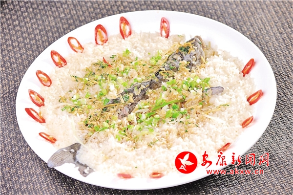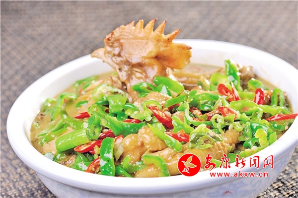 辣椒是農(nóng)家自產(chǎn)的時蔬,魚是嵐河水孕育出的鮮魚,皆是原生態(tài)無公害食品。一個鮮綠,一個鮮嫩,色香味美,佳偶天成。