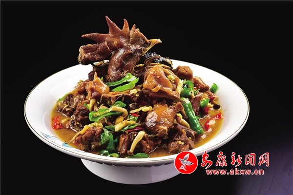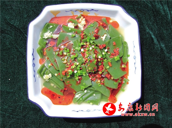 酸辣魔芋:是嵐皋特色名菜,也是當(dāng)?shù)胤沁z項(xiàng)目之一。以秋收后鮮魔芋漿汁為原料,加入堿水煮制,冷固后呈豆腐形狀,切塊后與當(dāng)?shù)嘏莶艘黄鸫蠡鸱炊。魔芋中?ldquo;堿”和泡菜中的“酸”完美結(jié)合,具有保護(hù)腸胃、排毒養(yǎng)顏、減肥瘦身的功效,同時(shí)還能降血糖、降血脂、降血壓。嵐皋民諺“要見好公婆,多吃鬼腦殼”,說的是姑娘吃了魔芋豆腐,瘦體健身、容光煥發(fā),能得到公婆的好感,F(xiàn)代醫(yī)學(xué)認(rèn)為,魔芋豆腐中含量最大的葡萄甘露聚糖,具有強(qiáng)大的膨脹力,超過任何一種植物膠的黏韌度,既可填充胃腸,消除饑餓感,又因所含熱量微乎其微,故能控制體重、減肥健美。此外,魔芋豆腐既能開胃化食,又能清除腸道垃圾,有防癌抗癌的神奇魔力,享有“防癌魔衣”“神奇食品”的美譽(yù)。
