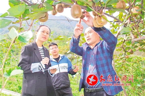 縣農(nóng)業(yè)農(nóng)村局高級農(nóng)藝師、科技特派員謝利華,帶領(lǐng)科研團(tuán)隊(duì)在基地記錄不同區(qū)域獼猴桃品種生長情況,采收獼猴桃新品準(zhǔn)備送檢。