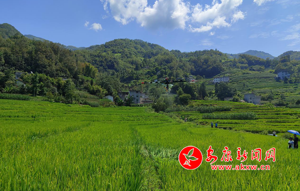 在嵐皋縣官元鎮(zhèn)“西部皇田”水稻農(nóng)業(yè)園區(qū),一架小型無人機(jī)來回穿梭于水稻田上空,對(duì)水稻進(jìn)行飛防作業(yè)。據(jù)了解,嵐皋官元鎮(zhèn)共種植富硒有機(jī)水稻800余畝。目前,水稻……