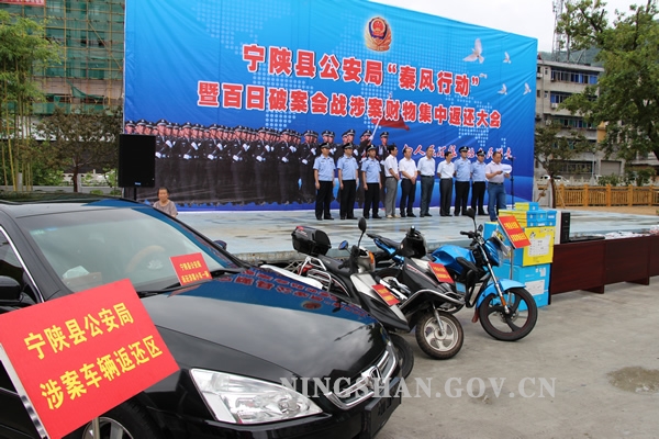 8月4日,寧陜縣召開“秦風(fēng)行動(dòng)”暨百日破案會(huì)戰(zhàn)涉案財(cái)物集中返還大會(huì),向受害群眾返還總價(jià)值60余萬元的財(cái)物。