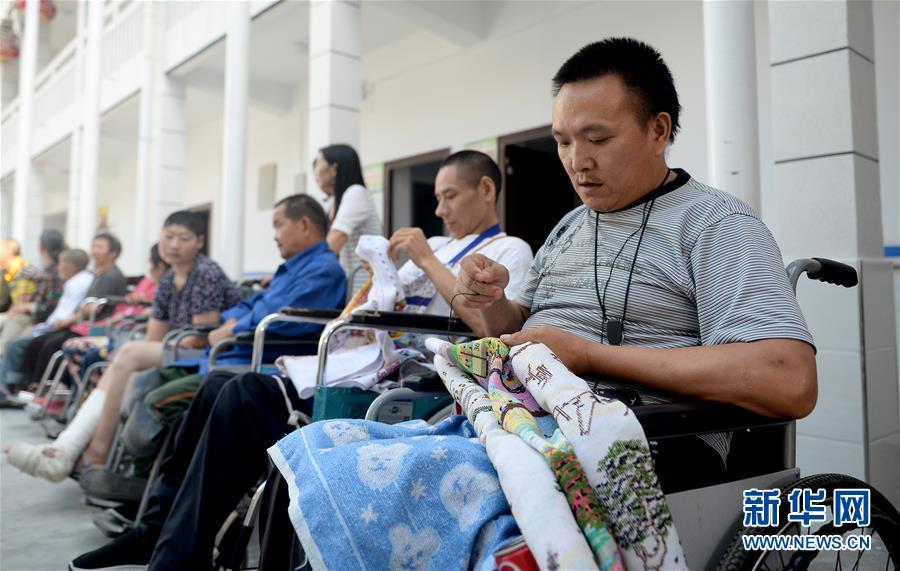 寧陜縣中心敬老院五保失能托養(yǎng)中心內(nèi),托養(yǎng)人員張朝兵(右一)、何永龍(右二)在繡十字繡(8月20日攝)。張朝兵、何永龍都在意外事故中造成高位截癱,家中無(wú)人照料。進(jìn)入托養(yǎng)中心后他們開(kāi)始學(xué)習(xí)繡十字繡,除了政府補(bǔ)助之外還能通過(guò)自己的手藝補(bǔ)貼家用。 yCp安康新聞網(wǎng)