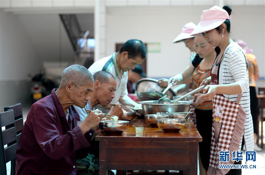 寧陜縣中心敬老院五保失能托養(yǎng)中心內(nèi),托養(yǎng)人員在吃午餐(8月20日)