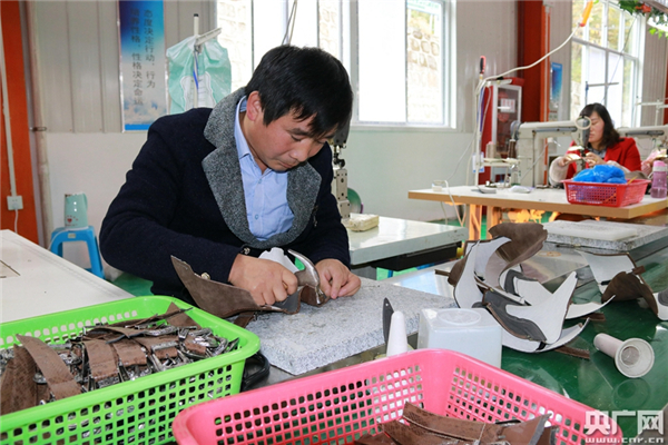黃章友在社區(qū)工廠上班(央廣網(wǎng)記者 舒隆煥 攝)
