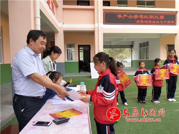 唱紅色歌曲,抒愛國之情!陡璩鎳、《今天是你的生日》、《我愛北京天安門》......一首首嘹亮的歌聲唱著華嚴小學(xué)全體師生對祖國的熱愛,進一步增進了該校師生對黨、對社會主義祖國的樸素情感。