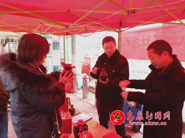 本網(wǎng)訊 (通訊員 黃倩 甄財(cái)鑫)年關(guān)將至,寧陜街頭張燈結(jié)彩,到處洋溢著春節(jié)的氣息,年貨一條街的第一個(gè)攤位格外的熱鬧,“大家都來看一看,瞧一瞧,中華村脫貧園區(qū)產(chǎn)品純高粱白酒‘子午小燒’,土法釀制、口感甘甜,可以免費(fèi)品嘗喲。”寧陜縣民政局派駐中華村“第一書記”程建熱情的推銷著,身邊擠滿了前來購買的人群。