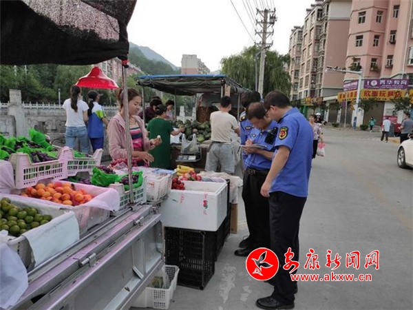 “大娘,您好!這個十字路旁不能擺攤,會影響行人通行,您可以到臨時過渡市場進(jìn)行售賣,我們幫您把物品搬運(yùn)到臨時過渡市場吧。”這是執(zhí)法隊員在迎賓大道柔性執(zhí)法的一幕。