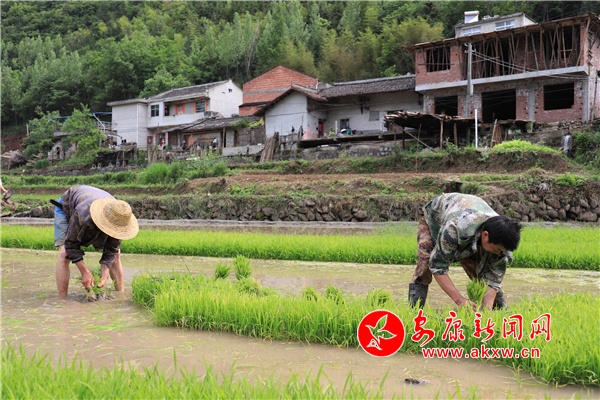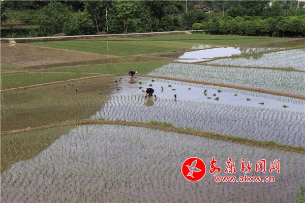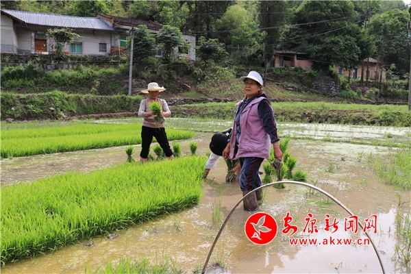 近日,正值谷雨時(shí)節(jié),春雨綿綿,走進(jìn)寧陜縣龍泉村水稻種植區(qū)域,這里青山環(huán)繞,蛙聲一片,村民們搶抓好時(shí)節(jié)引水耙田、移栽秧苗,在水田里來(lái)回穿梭,一株株秧苗整齊有序地插入水田里,田間地頭呈現(xiàn)出一幅忙碌的春耕畫(huà)卷。(通訊員 王輝)N7k安康新聞網(wǎng)