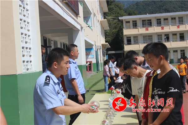 活動(dòng)中,民警向師生們發(fā)放禁毒倡議書(shū),現(xiàn)場(chǎng)通過(guò)圖片及仿真毒品讓學(xué)生認(rèn)識(shí)海洛因、冰毒、搖頭丸等形形色色的毒品,使廣大學(xué)生進(jìn)一步認(rèn)清毒品對(duì)人體和家庭的危害及對(duì)社會(huì)的影響,提高抵制毒品的自覺(jué)性。