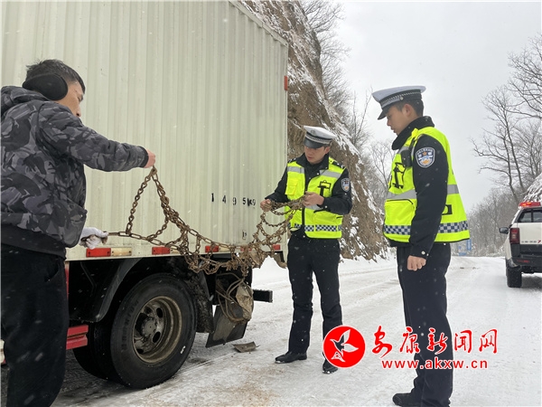 組織廣貨街交警中隊(duì)、旬陽(yáng)壩交警中隊(duì)和巡查組民輔警在345國(guó)道石溝梁路段及210國(guó)道平河梁、月河梁、腸子峽等重點(diǎn)路段流動(dòng)巡邏檢查。對(duì)未掛防滑鏈條的車(chē)輛,要求停車(chē)掛好防滑鏈條后再上路行駛,對(duì)不會(huì)安裝防滑鏈條的車(chē)主,民警手把手教司機(jī)安裝防滑鏈條,并叮囑駕駛?cè)藭r(shí)刻注意冰雪路面行車(chē)安全,提高安全行車(chē)意識(shí)。同時(shí),會(huì)同公路部門(mén)、鎮(zhèn)村在路面撒鹽融冰,清掃積雪,并要求各鎮(zhèn)勸導(dǎo)站開(kāi)展交通安全勸導(dǎo),全力預(yù)防道路交通事故發(fā)生。tTv安康新聞網(wǎng)