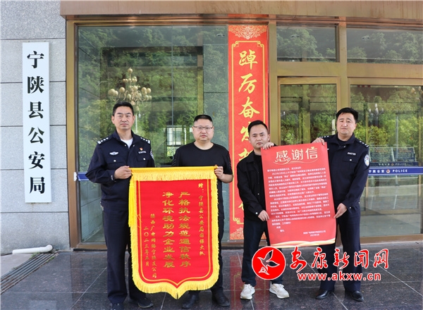 5月17日上午,陜西廣電網(wǎng)絡(luò)寧陜縣支公司負(fù)責(zé)人將一面印有“凈化環(huán)境助力企業(yè)發(fā)展 嚴(yán)格執(zhí)法規(guī)范通信秩序”的錦旗送到寧陜縣公安局,對民警主動作為、積極為企業(yè)排憂解難、守護(hù)企業(yè)安全有序的辛苦付出表示感謝。