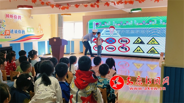 活動(dòng)中,民警用生動(dòng)有趣的語(yǔ)言為小朋友講解了安全行走、安全過(guò)馬路、安全乘車(chē)以及正確佩戴安全頭盔、系好安全帶、認(rèn)識(shí)交通標(biāo)志標(biāo)識(shí)等基本的交通安全知識(shí)。同時(shí),通過(guò)現(xiàn)場(chǎng)互動(dòng)、你問(wèn)我答的方式,向?qū)W生們講解闖紅燈、橫穿馬路、多人騎乘摩托車(chē)等不文明交通行為的危害。最后,民警現(xiàn)場(chǎng)教學(xué)交通指揮手勢(shì),加深小朋友對(duì)交通安全常識(shí)的理解與記憶,引導(dǎo)他們從小樹(shù)立安全出行的理念,增強(qiáng)安全意識(shí),自覺(jué)遵守交通法規(guī)。