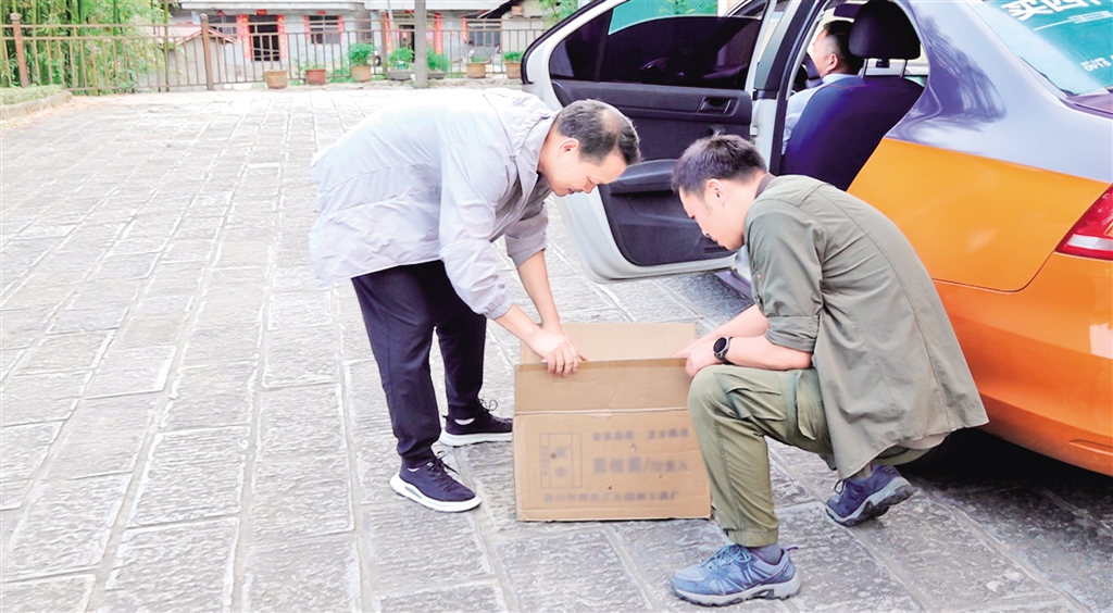 漢陰縣林業(yè)局相關(guān)負責人將朱鹮送到寧陜縣朱鹮野化放飛基地管理站。