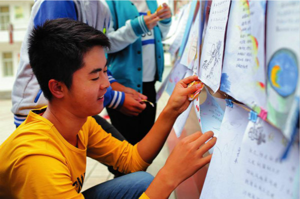9月25日,為了迎接即將到來的中秋節(jié),秦嶺深處的寧陜縣城關(guān)高中在校園里舉行“中秋詩詞歌賦展”,吸引了全校學(xué)生的參加;顒(dòng)中,學(xué)生們自己動(dòng)手用繪畫、詩詞歌賦……