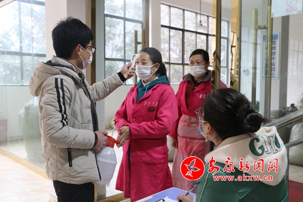 本網(wǎng)訊  (通訊員 陳金山)“36.6度,體溫正常,請(qǐng)做好登記、消毒。”2月18日上午8點(diǎn),在平利縣正陽(yáng)鎮(zhèn)南溪河村社區(qū)工廠入口處,返崗的工人們按一定距離排好隊(duì),在接受口罩佩戴檢查、測(cè)量體溫、酒精消毒,確認(rèn)無(wú)異常后,陸續(xù)進(jìn)入廠區(qū)。ju9安康新聞網(wǎng)