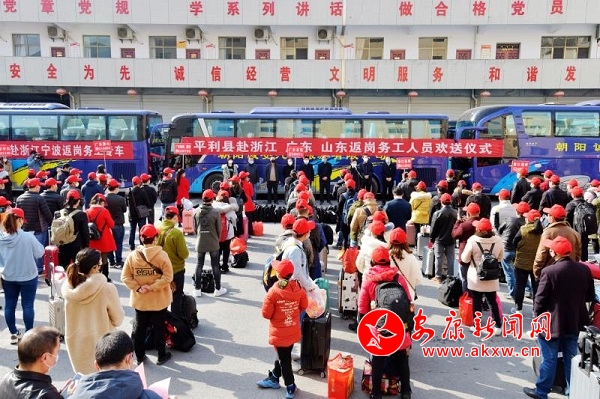 2月22日上午,平利縣第二批221名外出返崗務(wù)工人員,在縣政府的統(tǒng)一組織下,經(jīng)過疫情篩查比對、體溫檢測、信息登記和出站安檢等系列嚴(yán)格檢查后,免費乘坐著11輛“務(wù)工專車”駛向廣東、浙江、山東3省9市目的地。(通訊員 陳本利)hsQ安康新聞網(wǎng)