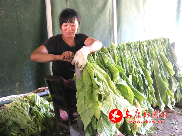 在龍洞河村廖明清的烤煙房外,65歲的鄧明珠正熟練的挑揀、捆綁,幾分鐘就把一桿煙葉綁好了。鄧大娘一邊干活一邊笑著說:“通過扶貧搬遷搬到了山下,兒女在外務(wù)工,乘著現(xiàn)在我還能干,給兒女減輕一些負(fù)擔(dān),我已在這里干了幾個(gè)月了,每天100元的工資,土地也流轉(zhuǎn)給合作社,兩項(xiàng)加起來1萬多塊錢還是掙得到的。