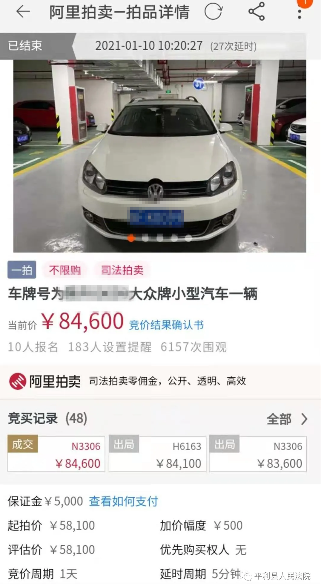 本網(wǎng)訊(通訊員 鄭欽)成交了!1月10日上午十點(diǎn)二十分,平利法院通過(guò)淘寶網(wǎng)網(wǎng)絡(luò)司法拍賣的一部大眾牌小型汽車以高出評(píng)估價(jià)百分之四十五的價(jià)格成功拍出。