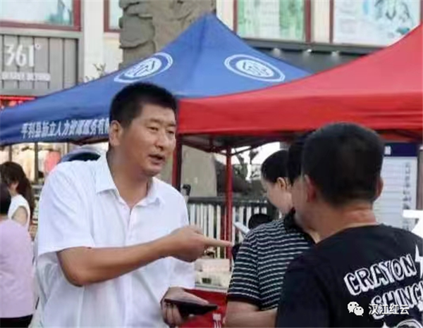 平利縣新立人力資源公司經(jīng)理?xiàng)罡稒?quán)與應(yīng)聘者交談。