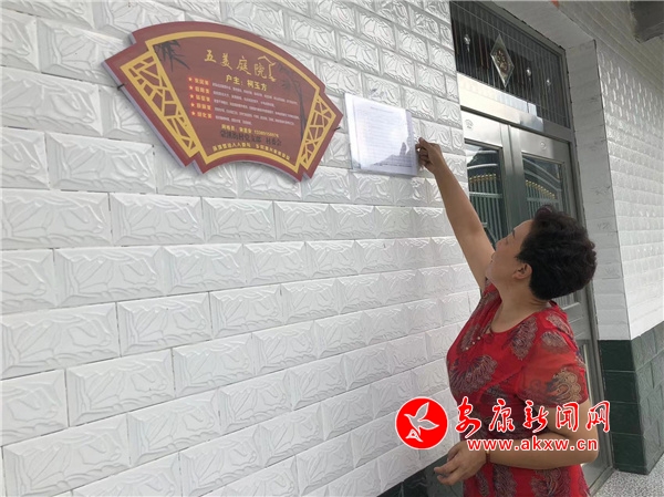 四組宋立琴一大早就拿著大掃帚清掃院落,潔凈的玻璃窗倒映著笑臉,與大門(mén)上懸掛著的“五美庭院”相得益彰。環(huán)顧四周,宋立琴周邊農(nóng)戶(hù)都懸掛著同樣的“五美庭院”標(biāo)識(shí)。