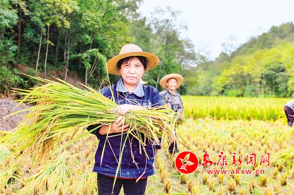 在平利縣老縣鎮(zhèn)蔣家坪村100畝的稻田魚生態(tài)種植養(yǎng)殖基地,負(fù)責(zé)人余治東正帶著村民們收割稻穗、捕撈稻田魚。在稻田的另一旁,縣農(nóng)業(yè)農(nóng)村局的負(fù)責(zé)人也正在對稻田養(yǎng)魚進(jìn)行測產(chǎn)驗(yàn)收。十幾名干部群眾加入抓魚隊(duì)伍,一條條活蹦亂跳的稻田魚裝滿魚桶。