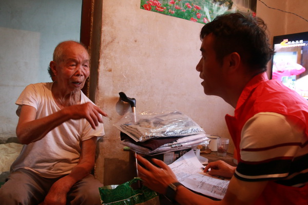 志愿者們利用周末時間,為抗戰(zhàn)老兵送上米面油、電動按摩器、躺椅、電風(fēng)扇、剃須刀、衣物等人均700元的夏季慰問物資,傾聽了6名抗戰(zhàn)老兵的故事。在老人們的講述中,志愿者們恍然間又被帶回到半個多世紀(jì)以前的炮火硝煙、老兵們冒著槍林彈雨奮力拼殺的歷史場面。這些昔日的戰(zhàn)場英雄如今卸甲歸家,不管他們?nèi)缃裆钤鯓,但他們身上流淌的那股熱血和中國魂依舊令人肅然起敬,每一位老兵都是一段不朽的傳奇,每一位老兵都是一塊活著的抗戰(zhàn)紀(jì)念碑。