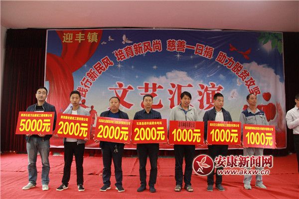 一首《讓世界充滿愛》拉開了活動帷幕,關(guān)心支持迎豐發(fā)展的各企業(yè)伴隨歌聲紛紛獻(xiàn)上愛心,以陜西石泉萬達(dá)建設(shè)工程有限公司為代表的12家愛心企業(yè)代表人依次登臺捐款,迎豐鎮(zhèn)鎮(zhèn)長譚可新代表鎮(zhèn)慈善協(xié)會接收捐款,此環(huán)節(jié)籌得捐款1.7萬元,愛心企業(yè)的慷慨解囊充分彰顯了這些企業(yè)的社會責(zé)任感。