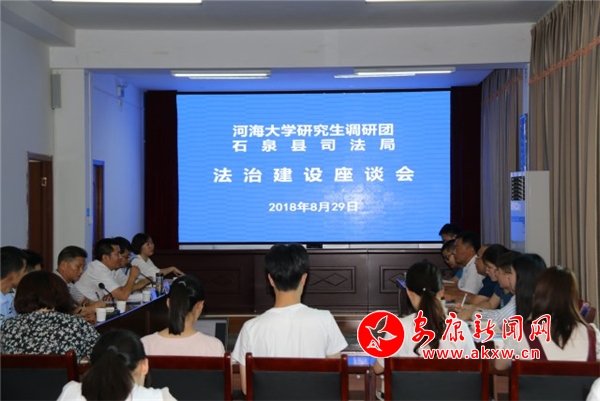 安康新聞網(wǎng)訊(通訊員 郭。┙眨诤雍4髮W后勤服務(wù)中心副主任胡忠平帶領(lǐng)下,河海大學部分研究生走進石泉縣司法局進行調(diào)研考察活動。副縣長劉成剛一同調(diào)研。