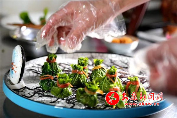 在景區(qū)內有一種特色蠶桑宴——“炸桑葉、涼拌桑葉、桑葉丸子湯、桑葉漿水面、桑葉餃子饅頭、桑葉涼粉、桑葚甜酒、炸蠶蛹、桑葉炒雞蛋、桑葉茶、桑葚酒、桑園辣子雞……”幾十道“桑葉”主題特色美食讓游客們垂涎欲滴。一盤炸桑葉10來片,能賣到18元,平均一片就達到近兩元,其他菜品單價也是28-88元之間不等,與1200斤桑葉喂養(yǎng)一張蠶賣2500元的好價錢相比較,經濟效益要高幾百倍。