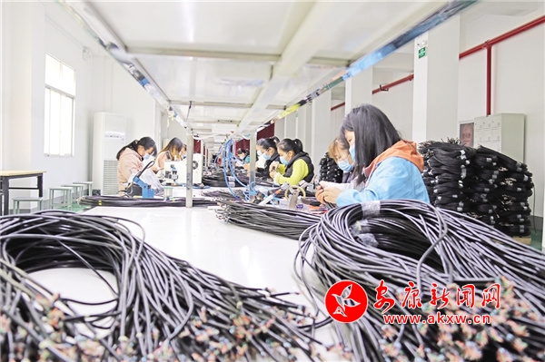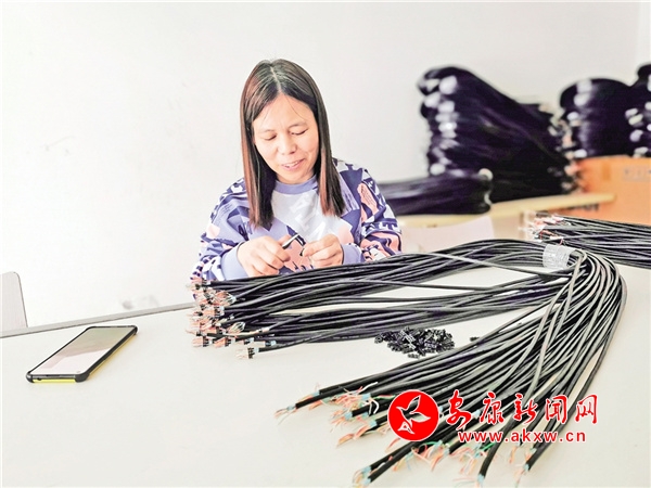 通過加工電子線束,黃海英們的生活得到了顯著改善。“以前送完孩子上學(xué),就沒事干了。自從我們這里有了這家電子線束加工廠,每天趁著娃上學(xué)后來這里做工,一月能掙3500多元,隨著技術(shù)熟練工資還會(huì)漲,日子越來越有奔頭了。”黃海英說。