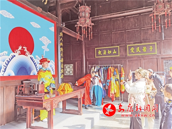 每到周末或節(jié)假日,石泉縣秦巴老街的古縣衙人頭攢動(dòng),走近一看,原來大家是在觀看情景劇“縣令審案”。“在古街上演情景劇,這種形式非常好,生動(dòng)有趣,感覺自己穿越到了古代,特別有氛圍感。”安康市民王樂趁著周末,約上朋友一起到石泉老街游玩。