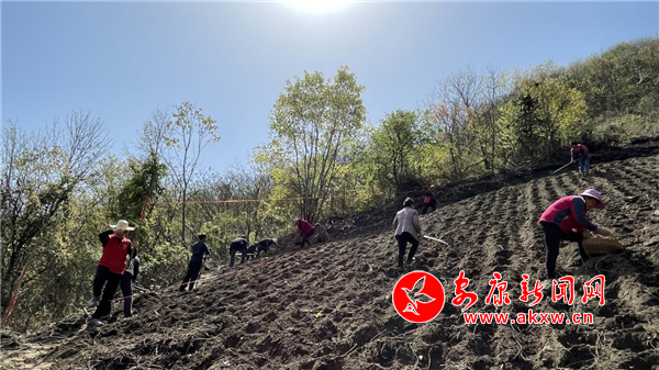 “你這個(gè)間距有點(diǎn)窄,點(diǎn)完玉米后,中間要1.8米,這樣才能為黃豆提供良好的通風(fēng)和光照環(huán)境。”青泥澗村產(chǎn)業(yè)技術(shù)指導(dǎo)員正在為三組村民指導(dǎo)大豆玉米復(fù)合種植技術(shù)。