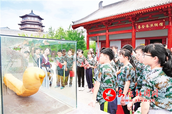 作為西北蠶桑第一大縣,石泉縣已經(jīng)形成了從制種、養(yǎng)蠶到繅絲、織綢的蠶桑全產(chǎn)業(yè)鏈,加上國寶“鎏金銅蠶”出土地加持,聲名遠(yuǎn)播。依托悠久的興桑養(yǎng)蠶歷史和金蠶文化,石泉縣于2020年啟動池河金蠶小鎮(zhèn)研學(xué)基地建設(shè),以明星村、五愛村、池河集鎮(zhèn)為核心,建成金蠶之鄉(xiāng)展覽館、鎏金銅蠶文創(chuàng)產(chǎn)品展銷中心、桑棲云村研學(xué)青年旅舍、鎏金銅蠶文化公園、醉美桑海博覽園、荷塘月色體驗區(qū)等項目,圍繞“桑、蠶、絲、史、勞、游”六大主題,開發(fā)研學(xué)系列課程52項,被命名為陜西省中小學(xué)生研學(xué)實踐教育基地。