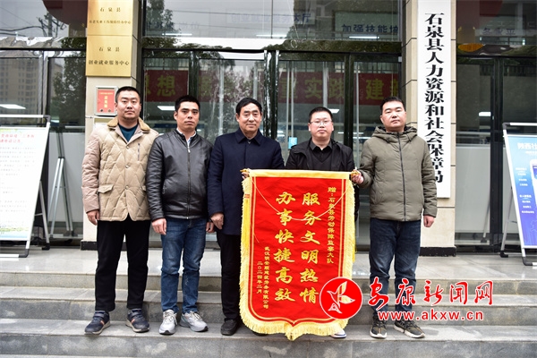 本網(wǎng)訊(通訊員 胡俊)2月18日,春節(jié)后上班第一天,武漢某勞務(wù)公司負責人及工人代表專程趕到石泉縣,將一面印有“服務(wù)文明熱情 辦事快捷高效”的錦旗送到該縣人社局勞動保障監(jiān)察大隊,對工作人員為民維權(quán)、積極保障勞動者權(quán)益的辛勤付出表示由衷的感謝和敬意。