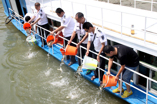 漢江喜河庫(kù)區(qū)舉行增殖放流活動(dòng) 放流魚(yú)種20余萬(wàn)尾