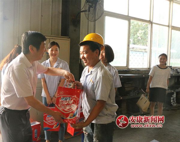 安康新聞網(wǎng)訊(通訊員 陳儀清 李祎萌 )7月12日下午4時,室外溫度接近40度,熱浪滾滾,旬陽縣縣長陳紅星冒著高溫酷暑深入旬小二級路甘溪段2號橋梁項目工地、陜汽集團(tuán)旬陽寶通專用車有限公司生產(chǎn)車間、商貿(mào)大街等地看望、慰問一線職工、農(nóng)民工和環(huán)衛(wèi)工人,為每人送去一份酸奶、核桃露等防暑物品?h總工會主席梁平等人陪同。