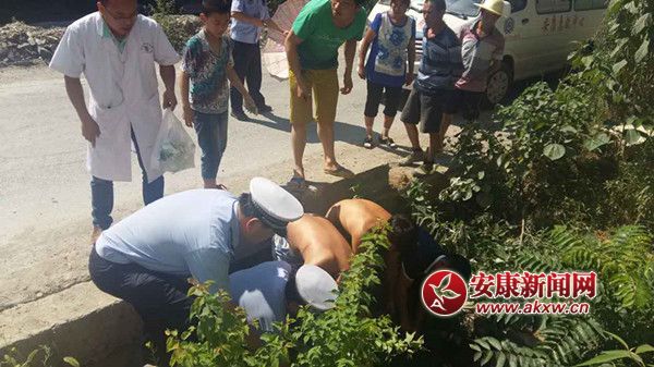7月24日12時許,旬陽小河執(zhí)勤中隊民警在轄區(qū)開展道路巡查返回至朱家灣時,遇一名10歲的小男孩站在道路邊,邊打電話邊哭泣,不遠(yuǎn)處有許多群眾圍觀。民警見狀立即停車詢問,小男孩哭著指向道路里側(cè)一處小涵洞。民警迅速沿著指引的地方查勘,發(fā)現(xiàn)一輛摩托車掉在涵洞下面,一男子仰面朝天躺在摩托車上,滿臉是血,身體有輕微的抽動。由于對男子的傷勢不清,不便隨意展開救援,民警立即聯(lián)系小河衛(wèi)生院醫(yī)生增援。巡查民警借來雨傘為受傷男子遮住太陽,對小男孩進(jìn)行安撫。詢問其家屬的聯(lián)系方式,經(jīng)對現(xiàn)場目擊證人和小男孩進(jìn)行了解核實,本事故屬于單方事故。受傷男子李某駕駛摩托車帶兒子到小河鎮(zhèn)途中,時逢酷暑高溫天氣,用手擦汗時,操作不當(dāng),致使摩托車墜入涵洞,將后座小男孩甩出,駕駛?cè)死钅畴S車掉到涵洞下面。圍觀群眾坦言,現(xiàn)在人心難測,如果沒有交警出面,害怕遭到誣陷。
