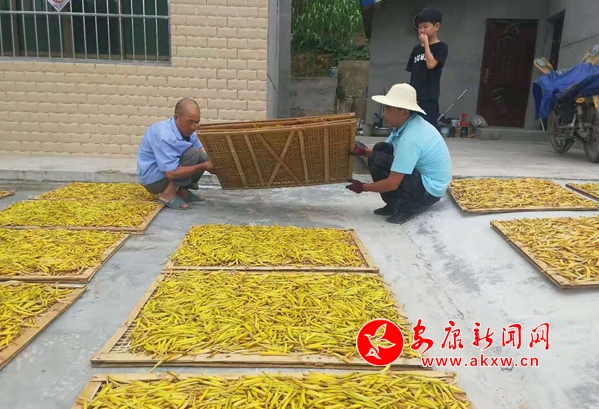當(dāng)然,要把黃花菜制成成品不單單是采摘回收那么簡(jiǎn)單,還需要經(jīng)過(guò)殺青、晾曬、烘烤、挑選等多道程序。“現(xiàn)在我們平均每天可以回收新鮮黃花菜四五百斤,制成干黃花后,市場(chǎng)價(jià)每斤可以賣到30元左右。”金竹村支部書(shū)記、天門山農(nóng)業(yè)專業(yè)合作社理事長(zhǎng)詹先斌邊忙碌邊向我們介紹道。三年來(lái),在他和鄉(xiāng)親們的共同努力下,“金竹黃花”在當(dāng)?shù)氐拿麣庠絹?lái)越響,金竹村天門山農(nóng)業(yè)專業(yè)合作社也一步步發(fā)展壯大,成長(zhǎng)為一家集種植、生產(chǎn)、加工、銷售黃花菜為一體的綜合性農(nóng)業(yè)專業(yè)合作社,詹先斌成為了村里名副其實(shí)的致富“領(lǐng)頭人”。3N3安康新聞網(wǎng)