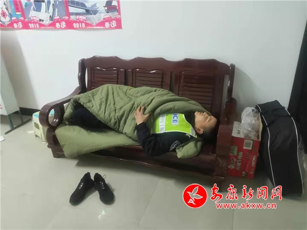 在神河中隊,全體民警迅速歸隊守護(hù)一方平安。原定于正月初八結(jié)婚的崔鵬程做出推遲婚期的決定,妻子屈曼不僅支持,也在第一時間趕到了神河鎮(zhèn)中心衛(wèi)生院的工作崗位上。小崔白天負(fù)責(zé)交通要道口湖北等外來車輛的排查篩查,晚上還要加班整理各類報表,同時兼顧日常的交管業(yè)務(wù),連續(xù)多日的嚴(yán)寒導(dǎo)致其患上重感冒,為了不影響工作,屈曼在中隊辦公室為小崔掛上了點(diǎn)滴。在神河高速路口設(shè)置的檢疫站上,中隊民警路紀(jì)煒全天候值守,淋著小雨患上風(fēng)寒感冒出現(xiàn)發(fā)燒癥狀后,在同事的多次勸說下才去縣醫(yī)院檢查治療,病情稍有好轉(zhuǎn),立即向領(lǐng)導(dǎo)申請返回崗位。7fA安康新聞網(wǎng)