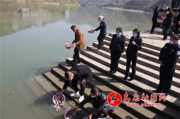 在安康鐵路運(yùn)輸檢察院、縣農(nóng)業(yè)農(nóng)村局、縣公安局等部門(mén)工作人員的監(jiān)督下,非法電魚(yú)的違法人南某、黃某向漢江共投放價(jià)值5000元7000余尾鰱魚(yú)魚(yú)苗,通過(guò)投放魚(yú)苗對(duì)非法捕撈損害的水域環(huán)境進(jìn)行生態(tài)補(bǔ)償。