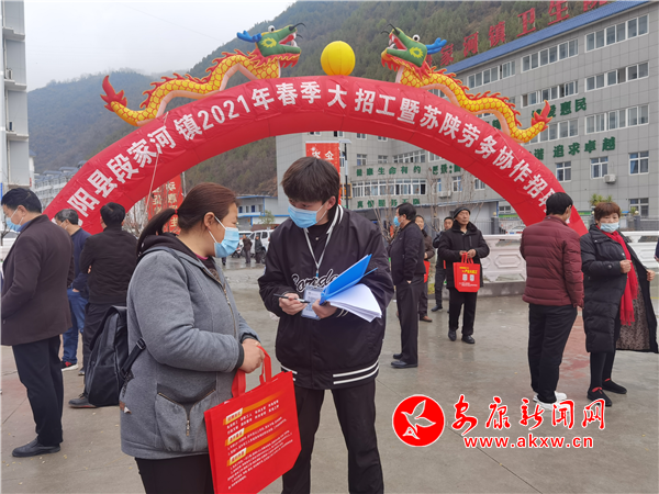 本網(wǎng)訊(通訊員 黃蓉)3月1日上午,在段家河鎮(zhèn)金水灣移民搬遷小區(qū)廣場(chǎng)上,舉辦了2021年春季大招工暨蘇陜勞務(wù)協(xié)作招聘會(huì),吸引了全鎮(zhèn)11個(gè)村(社區(qū))近500余名群眾前來(lái)咨詢(xún)。