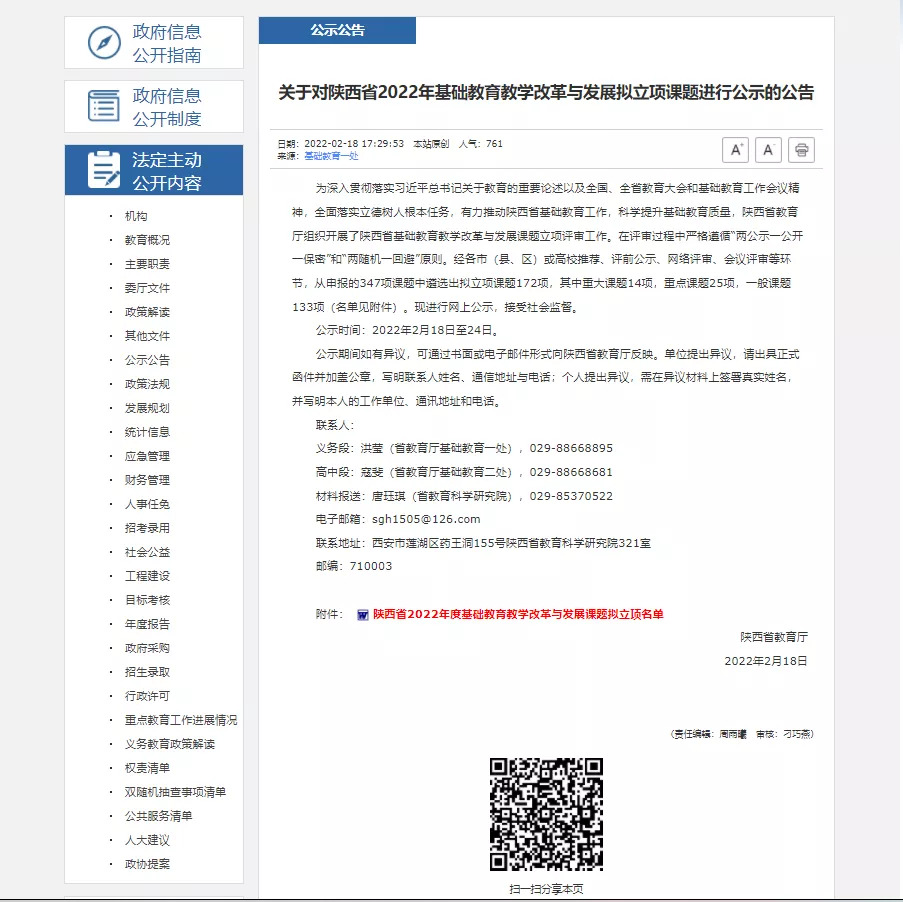 為了深入貫徹落實習(xí)近平總書記關(guān)于教育的重要論述以及全國、全省教育大會和基礎(chǔ)教育工作會議精神,全面落實立德樹人根本任務(wù),大力推動陜西省基礎(chǔ)教育工作,科學(xué)提升基礎(chǔ)教育質(zhì)量,陜西省教育廳組織此次課題的評審和立項工作。本次立項課題172項,是從申報的347項課題中遴選而出的。P7D安康新聞網(wǎng)
